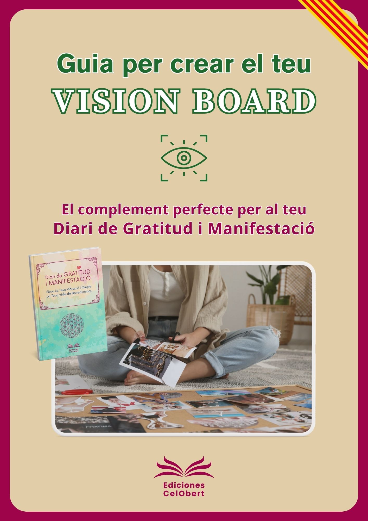 El Vision Board es el mejor complemento para el Diario de Gratitud y Manifestación. Unirás el enfoque visual de tu Tablero de Visión con lo escrito en tu Diario, con lo que multiplicarás su efecto.